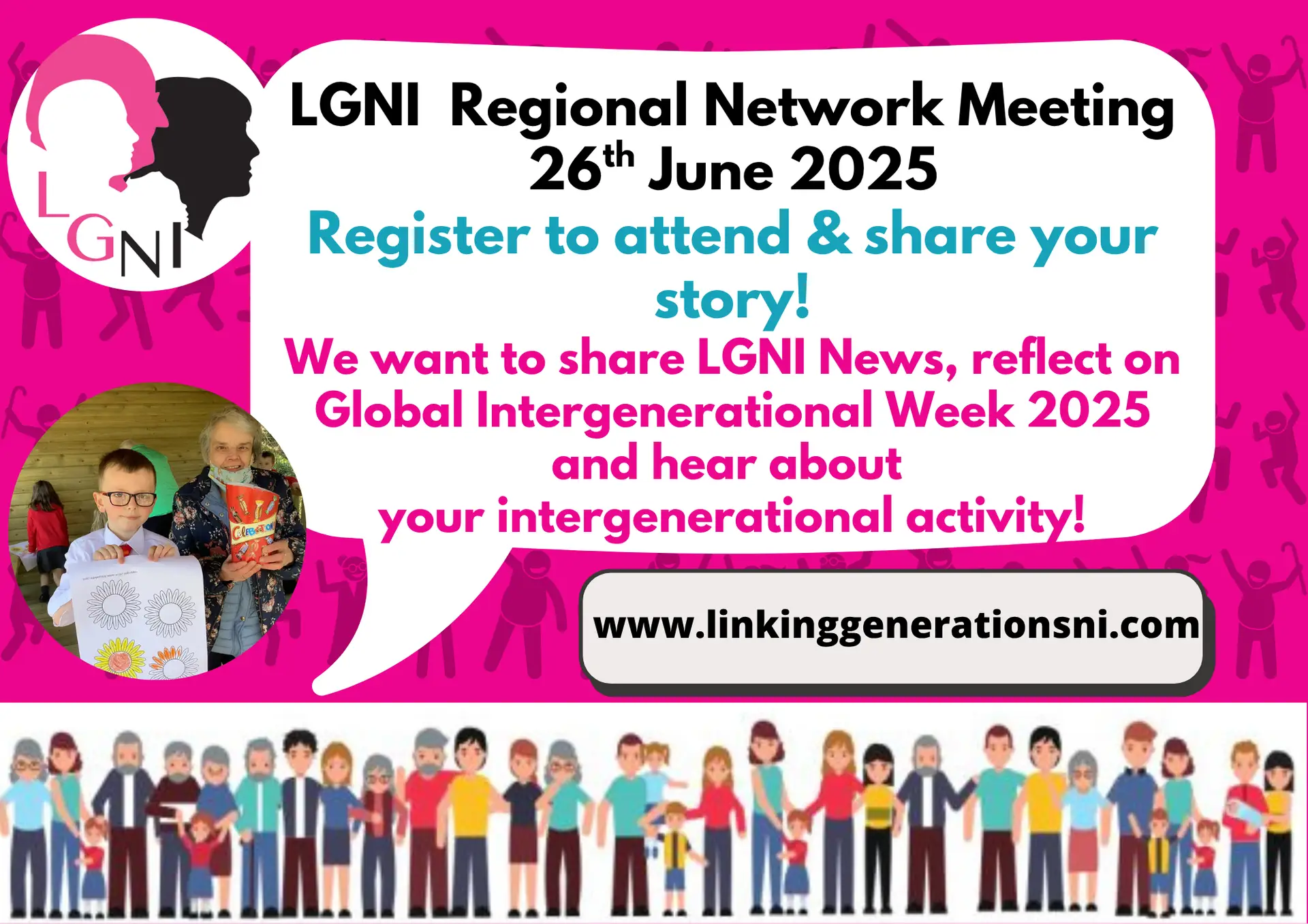 The focus of this meeting will be to offer our network members an opportunity to share the amazing intergenerational activities they have been involved in over the year. We will also give the latest LGNI News and reflect on a very successful Global Intergenerational Week 2025 Campaign!