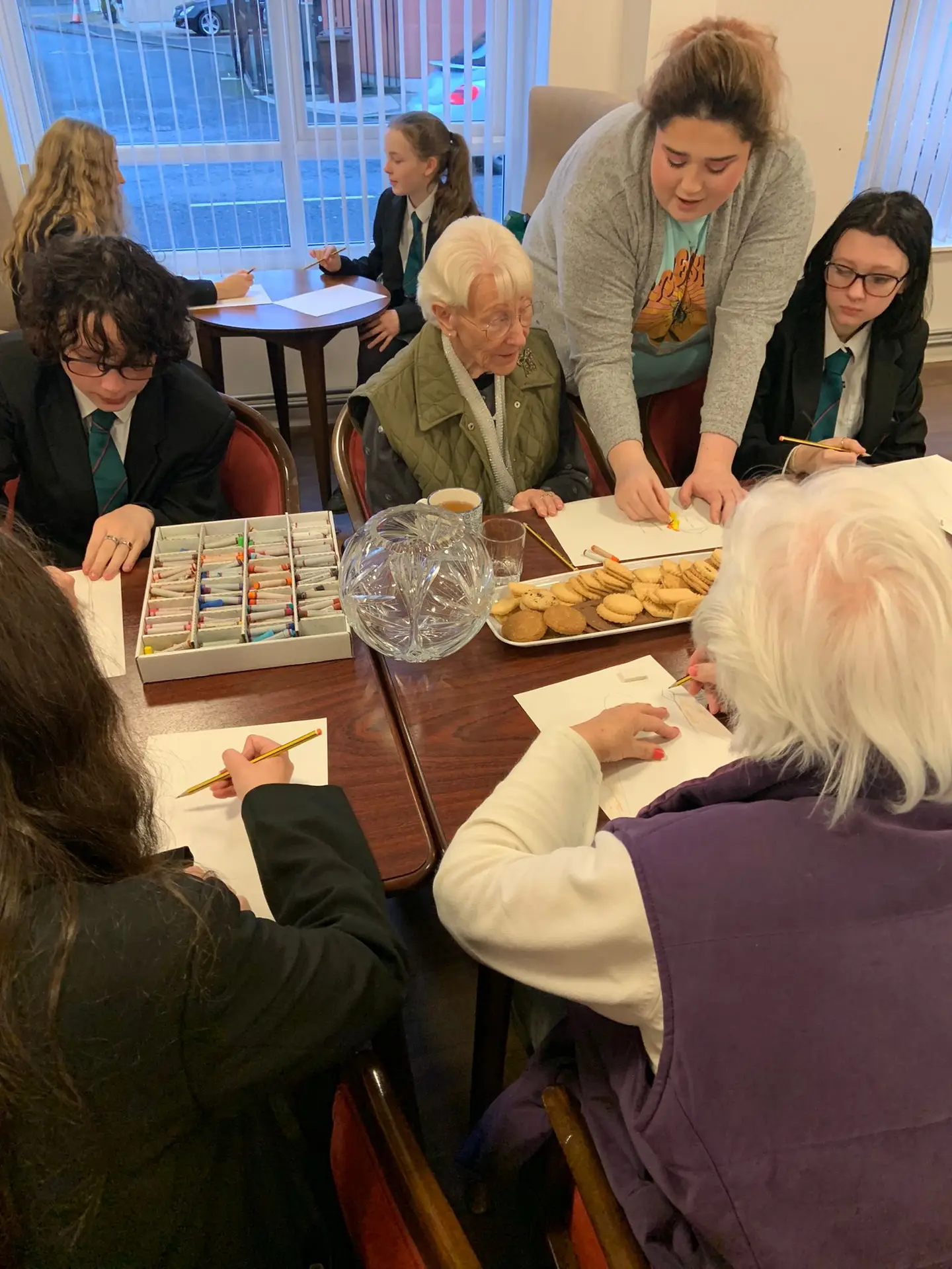We are delighted to be a part of this amazing intergenerational connection between Nendrum College Pupils and older people who live in Alpha Housing Scheme, Stepping Stones in Comber. Both settings are within walking distance of one another, previously had links before Covid ,but unfortunately these had broken down. Vicki from LGNI was happy to offer some support to rebuild the links and also utilise the ideas, enthusiasm and resources of the school and pupils.
